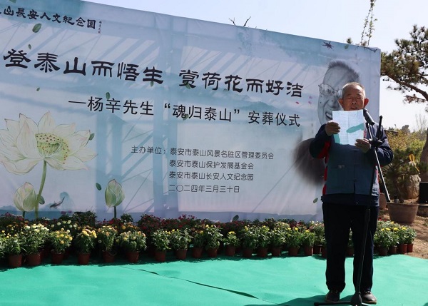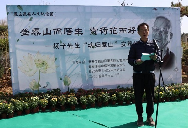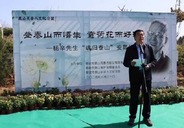 仪式上,泰山名胜风景区管委会负责领导与“三工”代表相继发表致辞,追忆了杨辛先生对泰山保护与发展的卓越贡献,杨辛先生之子杨乐发表答谢致辞。