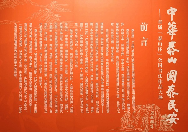 泰山石头会说话,笔走龙蛇展万象。此次大展仅是开端,未来愿景尤为可期!登高望远,奋力争先。相信中华泰山,国泰民安——首届泰山杯全国书法作品大展会进一步推动当代书法人才辈出,以文塑旅、以旅彰文中进一步丰富泰山的人文内涵,为泰安的高质量发展做出新的更大的贡献!