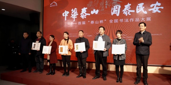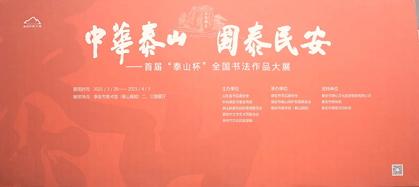 3月27日,“中华泰山 国泰民安——首届‘泰山杯’全国书法作品大展” 在泰安市美术馆(泰山画院)盛大开幕。 此次展览由山东省书法家协会、中共泰安市委宣传部、泰山风景名胜区管理委员会、泰安市泰山保护发展基金会等九家单位联合主办。