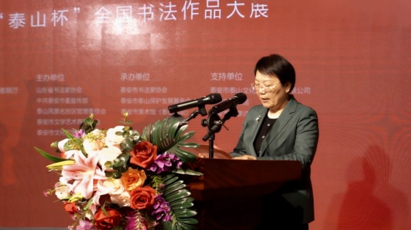 中国书协理事、山东省文联副主席、省书协主席王瑞,泰安市委常委、宣传部部长王爱新,泰安市委宣传部分管日常工作的副部长雷建民,泰安市文联党组书记、主席鹿锋,泰山景区党工委副书记陈传帅,泰安市文联党组成员、副主席孙黎,中国书协篆书委员会委员、山东省书协副主席、泰安市书协主席倪和军,泰安市美术馆馆长冯晓东,山东省书协发展工作部主任张国以及泰安市有关单位代表、书法界人士、获奖入展作者代表、泰山学院部分学生、媒体记者等300余人参加开幕式。