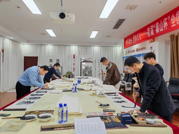 开幕式前,部分书法家以 “讲好泰山故事、传播泰山文化” 为主题,现场豪情泼墨,运用独特的书法技艺,书写出一幅幅刚健豪放的墨宝。